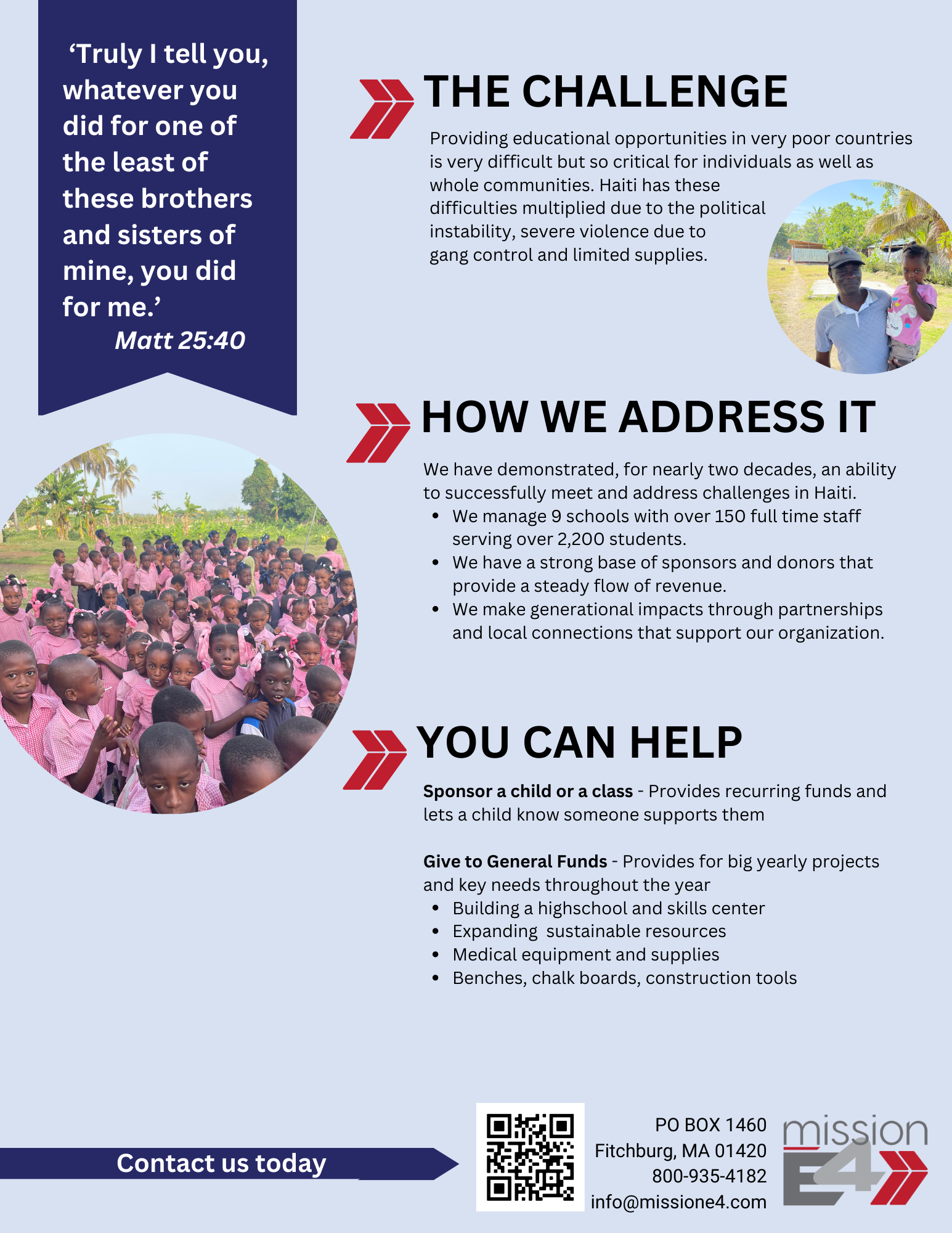 Mission E4 invites you to join us on a journey to Haiti. For the next six months we have prepared a path of exploration that will be fun...