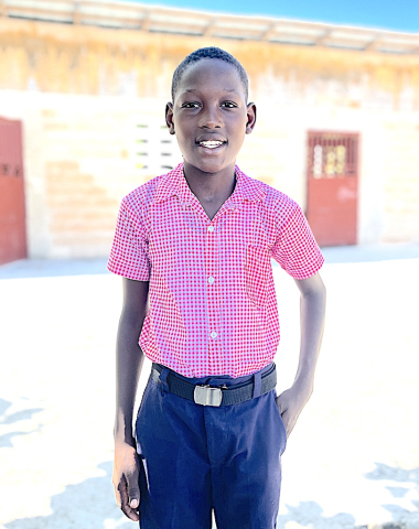 My house is made from palm trees and I help out at home by fetching water. I like to play soccer.
