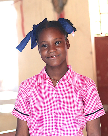 My father is a mason and my mother is a street vendor. My house is made from palm trees with a tin roof. I help my family at home by washing clothes. I love to play soccer. My parents would describe me as smart, respectful, and playful.