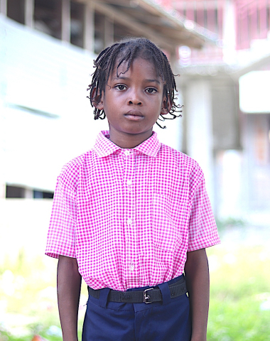 My house is made out of block and my mother is a street vendor. I help out at home by fetching water and cleaning the house. I like to play tag.