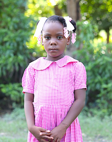 My house is made from wood and has a metal roof. My mother is a street vendor. I help out at home by fetching water. I like to play with dolls.