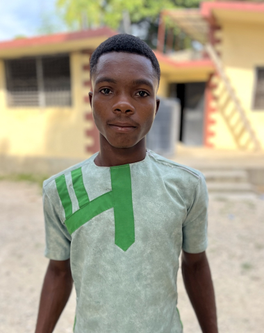 My house is made from palm trees. My father is a farmer and my mother is a street vendor. I help out at home by fetching water and taking care of the animals. I enjoy playing ball.