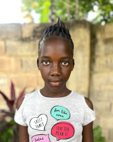 My house is made from block and has a tin roof. My mother is a street vendor and I help out at home by cleaning house. I like to play tag.