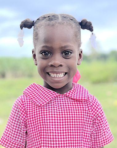 My house is made from block and has a tin roof. I help out at home by fetching water and I like to play with dolls.