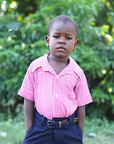 My house is made from tin sheets. My father works security and I help out at home by fetching water. I like to play tag.