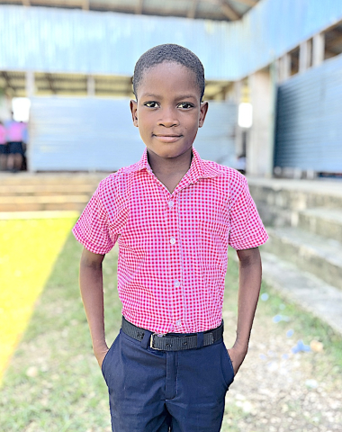 My father is a mason and my mother is a street vendor. I live in a cement block house. I help my family out by going to the market place. I like to play soccer.