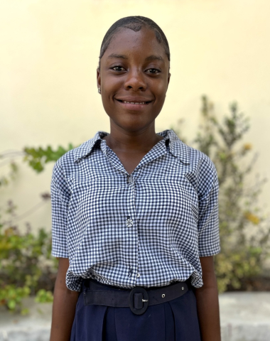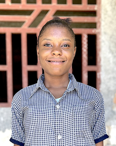 My house is made from block and my mother is a street vendor. I help out at home by fetching water and washing dishes. I like to play jump rope.