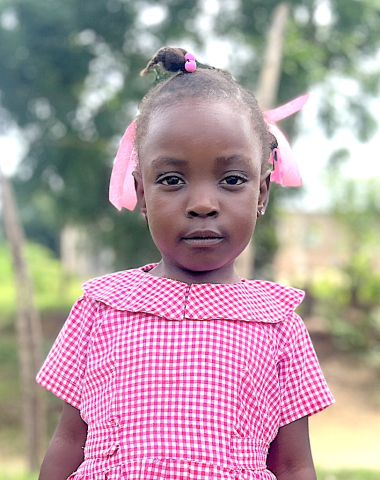 My house is made from palm trees. My father is a farmer and my mother is a street vendor. I help out at home by fetching water. I like to play with dolls.