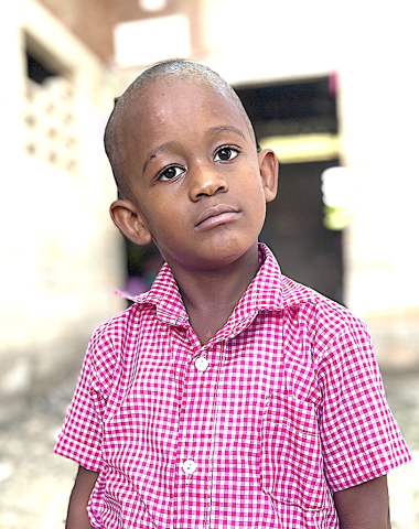 My father is a mason and my mother is a street vendor. I help out at home by fetching water. I have three brothers and I like to play tag.