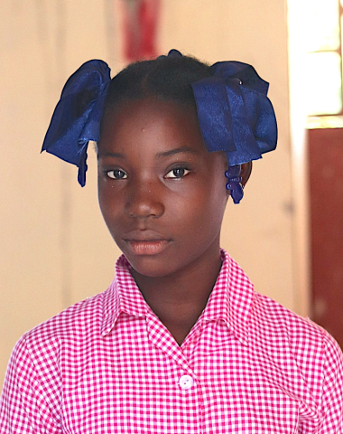 My mother is a street vendor and I help out at thome by washing dishes. My house is made from block and has a tin roof. My mother would describe me as timid, respectful, and smart. I like to play with dolls.